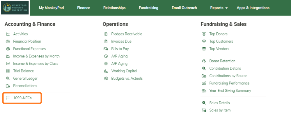 Speaking of tax season reports… If you work with any contractors or vendors, you’ll need to provide their 1099-NEC soon. That’s easy to do in MonkeyPod.