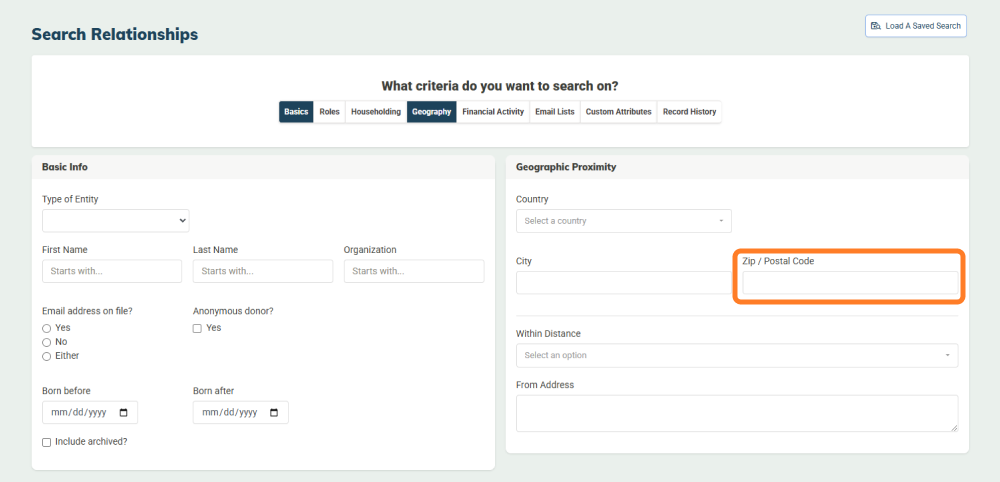 But what about searching by geography? The advanced search tool has always allowed you to search based on proximity to a specific address. Often that’s an ideal approach, such as when you’re looking for people who can reasonably be invited to attend an event at a certain location.