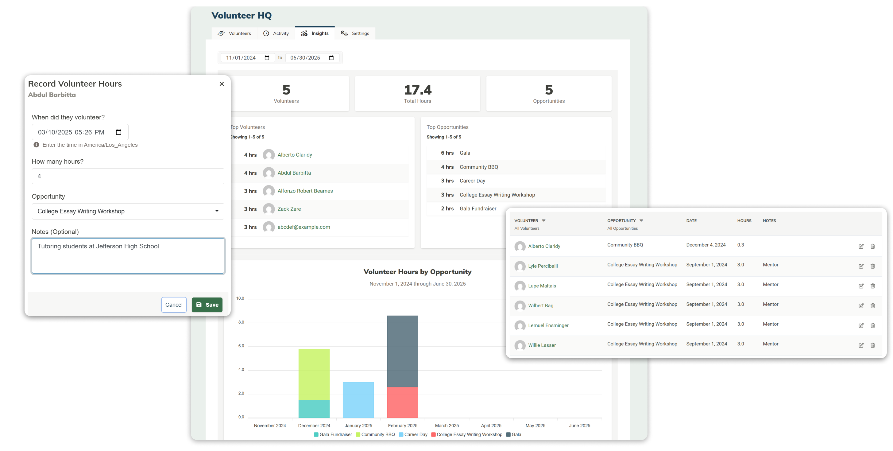 With MonkeyPod, you’ve always been able to track your volunteers in MonkeyPod using roles, and add any custom attributes you need. With Volunteer HQ, you’ll also be able to track volunteer hours. Hours can be added for any number of custom volunteer opportunities, and you’ll get valuable insights into the value of your volunteer program.