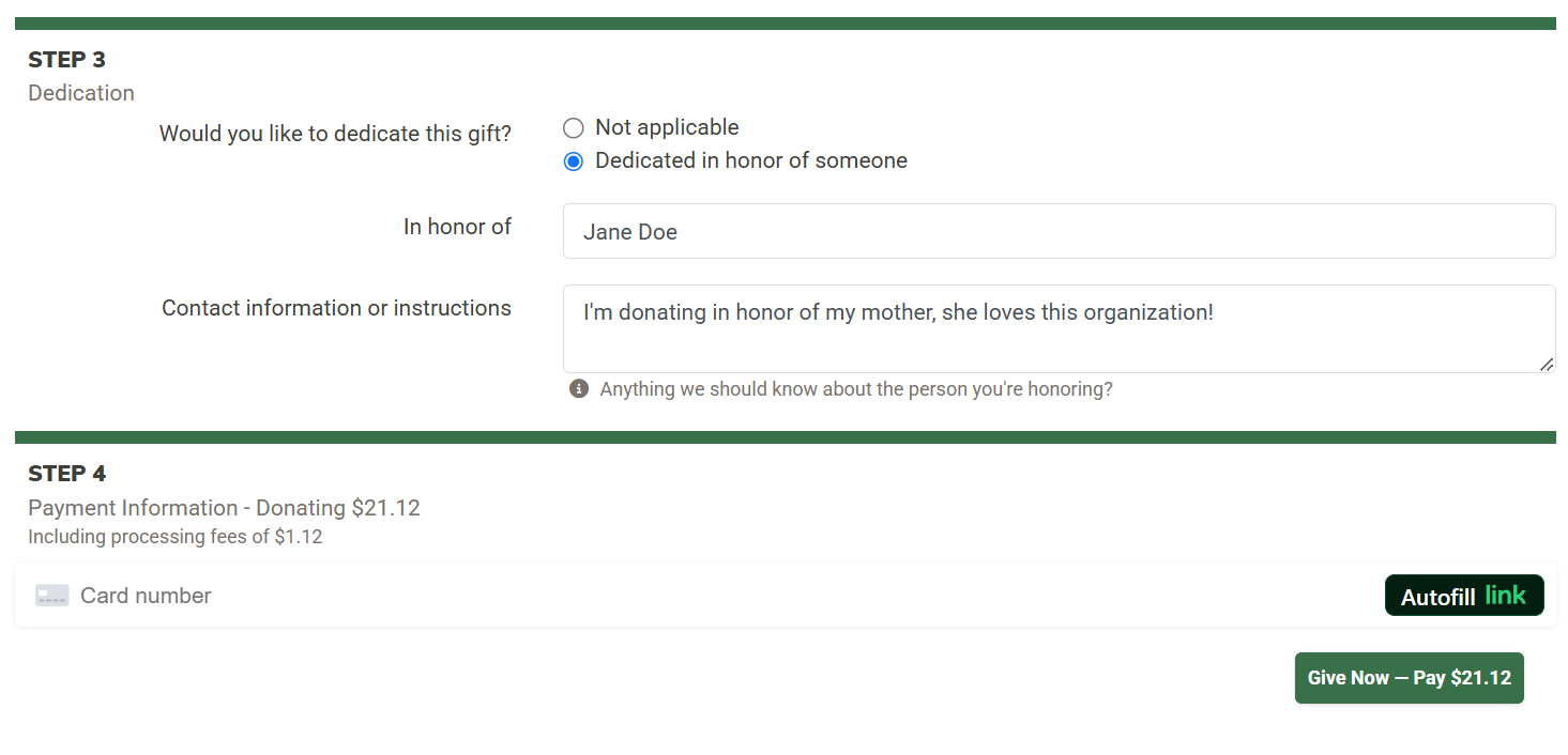 Learn more about Honorary Gifts and how to enable them by visiting our Knowledgebase.